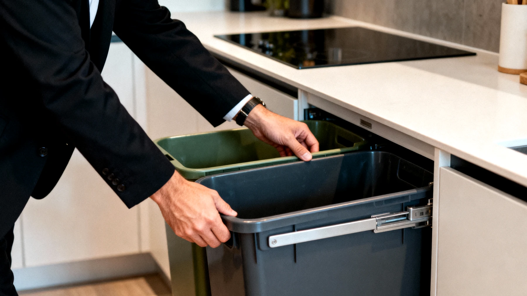 Quando possibile, una soluzione estremamente efficace è integrare i contenitori in mobili appositi. Sportelli a ribalta, cassetti scorrevoli o ante con cestelli integrati nascondono completamente i contenitori alla vista pur mantenendoli facilmente raggiungibili. Il principio è semplice: eliminare l’impatto visivo senza compromettere la funzionalità.