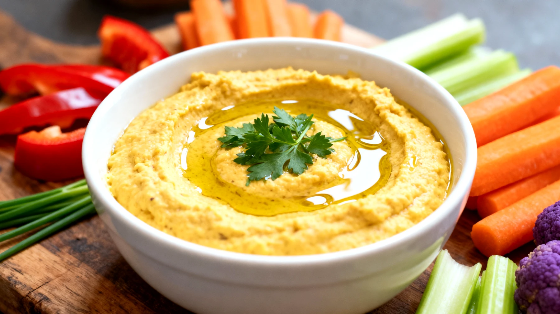 Bastoncini di carote, sedano, finocchio e peperoni non sono semplici veicoli per la crema: aggiungono enzimi digestivi naturali, vitamina C che potenzia l’assorbimento del ferro dai lupini, e fibre aggiuntive che prolungano ulteriormente la sazietà.