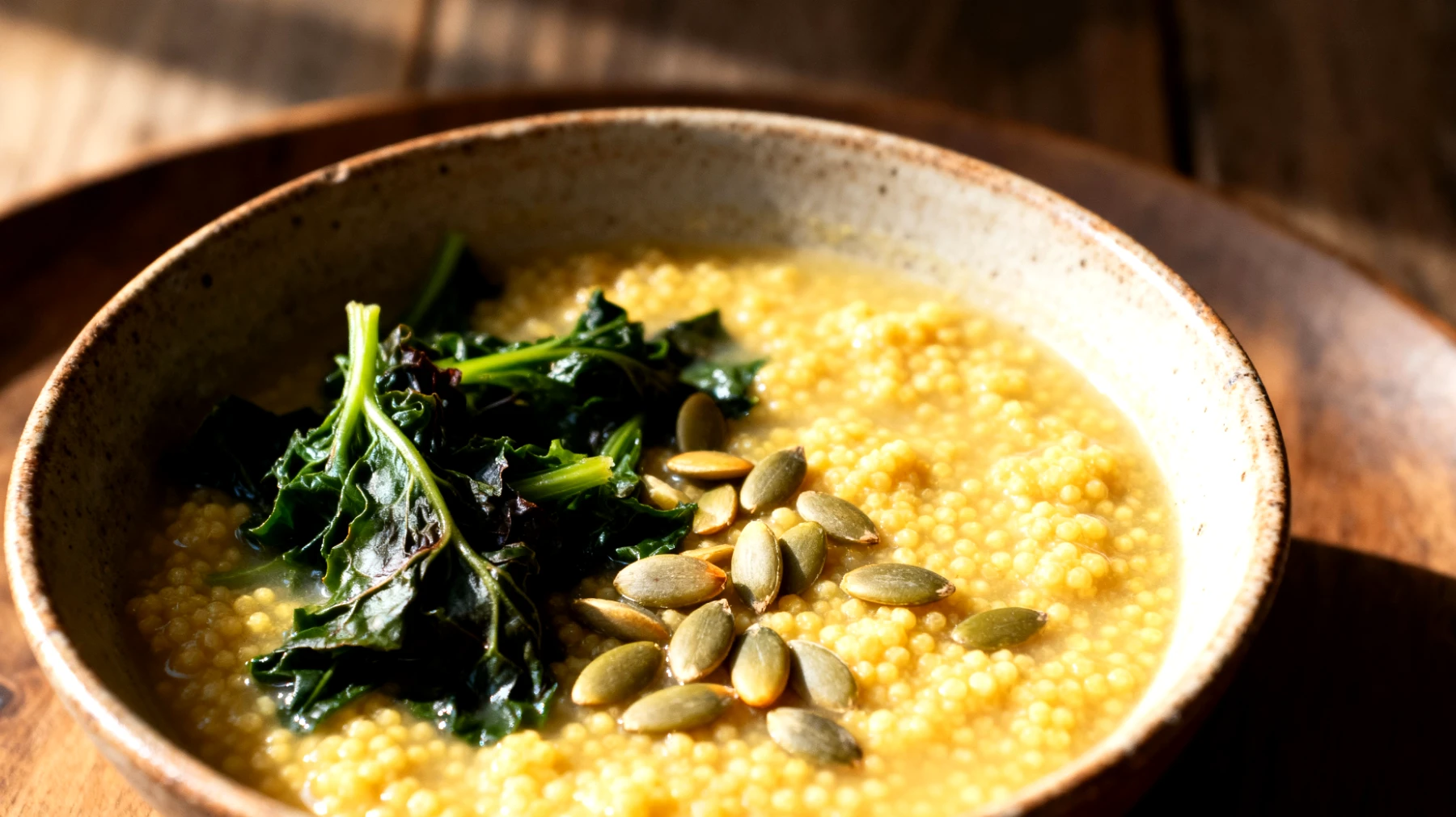 Dopo una giornata trascorsa davanti allo schermo del computer, con la mente affaticata da riunioni e scadenze, il corpo richiede nutrimento intelligente. Non un pasto pesante che ostacoli il sonno, ma nemmeno qualcosa di banale che lasci quella fastidiosa sensazione di fame notturna. La zuppa di miglio con verdure amare e semi di zucca rappresenta una risposta sofisticata a questa esigenza quotidiana di chi lavora con il cervello più che con i muscoli.