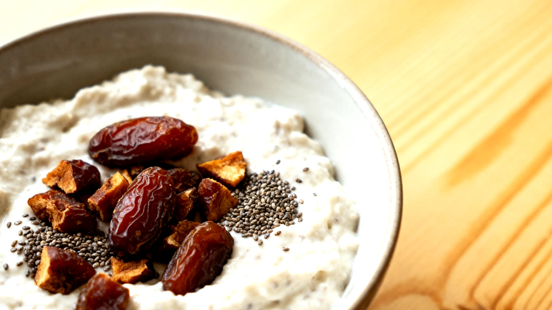 I datteri fanno molto più che dolcificare naturalmente questa crema. Apportano zuccheri semplici per energia immediata, ma anche fibre e potassio. La cosa interessante è che, grazie alla loro matrice fibrosa, alcune varietà di datteri mostrano un indice glicemico da basso a medio, con una risposta glicemica più graduale rispetto allo zucchero raffinato. Questo significa energia più costante, senza picchi e cali bruschi.