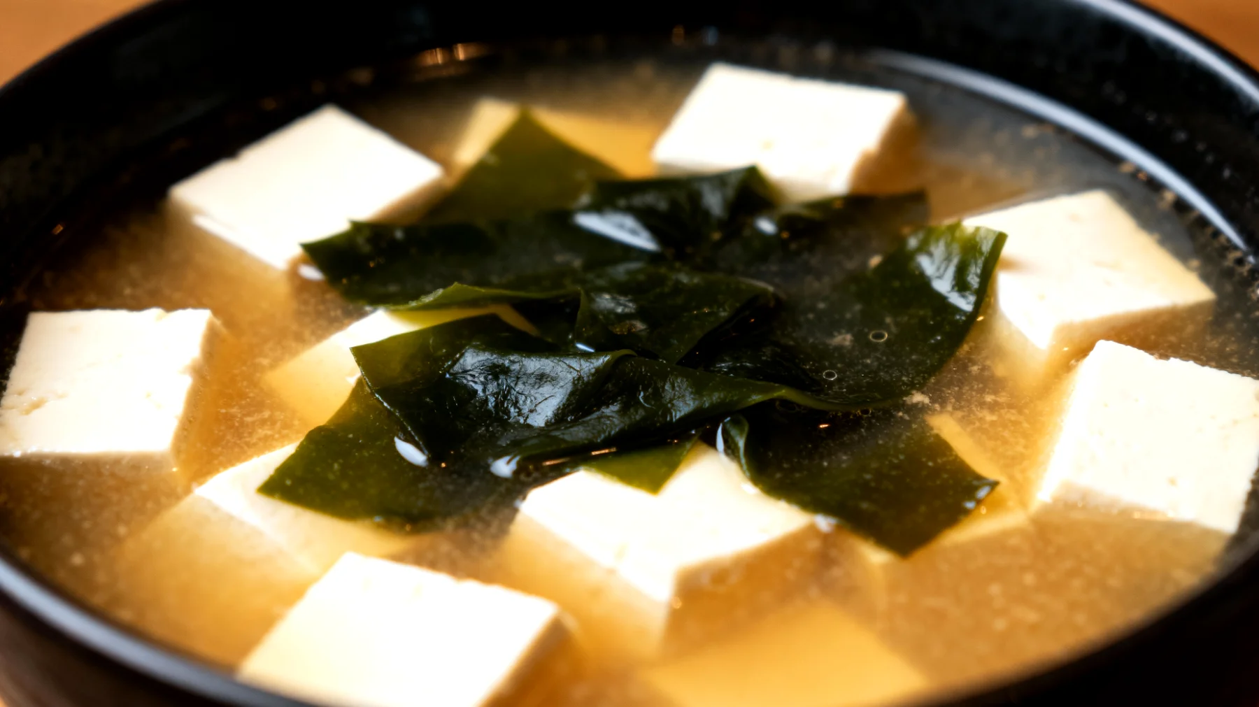 Il tofu, ottenuto dalla cagliatura del latte di soia, fornisce proteine vegetali complete contenenti tutti gli aminoacidi essenziali in proporzioni ideali per il nostro organismo. La sua particolare struttura lo rende facilmente digeribile, caratteristica particolarmente apprezzata nelle ore serali quando l’apparato digerente rallenta naturalmente i suoi ritmi. Associato all’alga wakame e alla pasta di miso fermentata, crea un piatto a bassa densità calorica che combina proteine vegetali, minerali essenziali e composti bioattivi in modo armonioso.