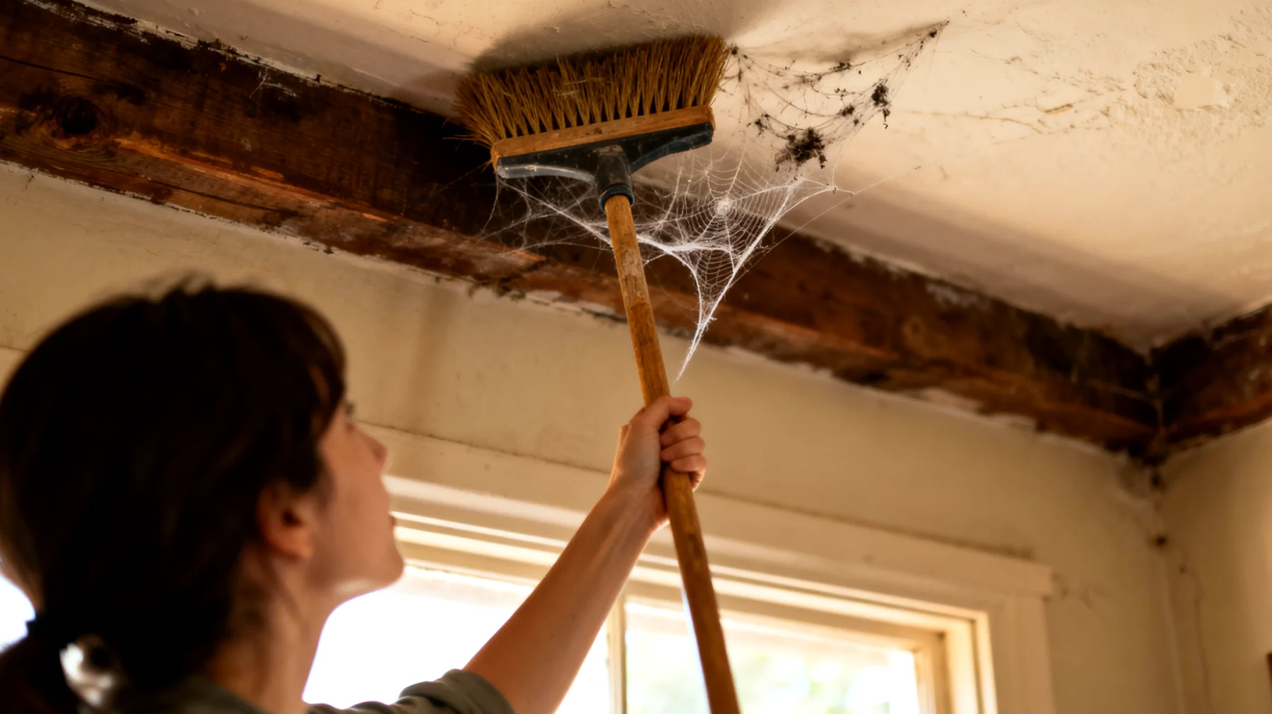 Negli ambienti domestici, le altezze sono spesso un ostacolo. I soffitti alti raccolgono ragnatele e polvere che difficilmente si rimuovono con normali strumenti. La scopa diventa una prolunga naturale del braccio, permettendo di trattare superfici altrimenti inaccessibili senza scale. Gli angoli superiori di armadi, tendaggi e profili di lampade sospese sono spazi che raramente vengono puliti, proprio per la difficoltà nel raggiungerli.